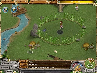 * construye chozas, recoge recursos y mejora tecnologías mediante puzles y eventos